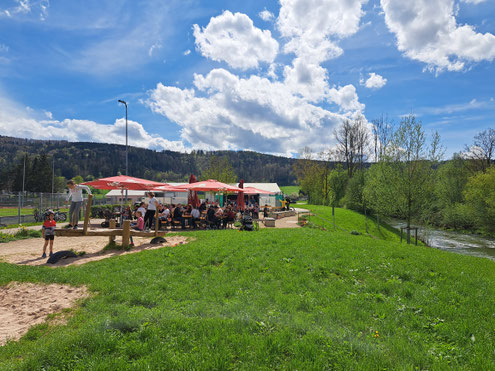 Neben unserem Biergarten gibt es einen Spielplatz für Kinder und natürlich eine Abkühlungsmöglichkeit in der Rems!